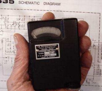 Como disponho de um detector de raios Alfa, Beta e Gama, coloquei-o ao pé durante 24 horas, mas ele não se moveu. Parece que emissão de raios-x, poderia ser posta de parte, pelo menos para a sensibilidade do instrumento que o fim de escala, só indica 150 mR, sendo R a unidade Roentgen, e é a intensidade de raios-x que uma pessoa apanha ao fazer uma radiografia ao tórax.